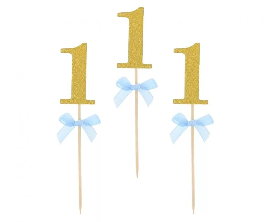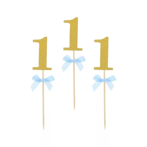 Blue 1st Birthday díszítő pálca, topper 10 db-os