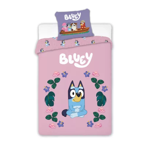 Bluey Blossom gyerek ovis ágyneműhuzat 100×135 cm + 40×60 cm, 100% pamut, puha és bőrbarát – vidám Bluey mesehős dizájn az ovis alváshoz.