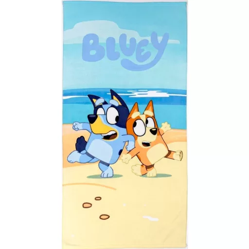 A Bluey Sunny Beach strandtörölköző tökéletes választás, ha egy könnyű, gyorsan száradó és vidám mintás fürdőlepedőt keresel a gyerekek nyári élményeihez.