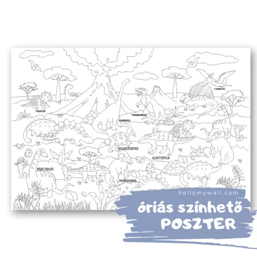 A gyerekek a kedves kis dinók neveit is kiszínezhetik, valamint a növényzetet és a vulkánokat is, amellyel bővülhet az ismeretük a természeti jelenségekről. Merüljön el gyermeked az őslények mintegy 230 millió éves érdekes múltjában, játékosan!