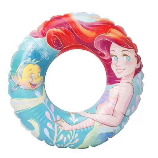 Ez egy Ariel mintás felfújható gyerek úszógumi, amely segíti a vízben való lebegést és a biztonságos strandolást.