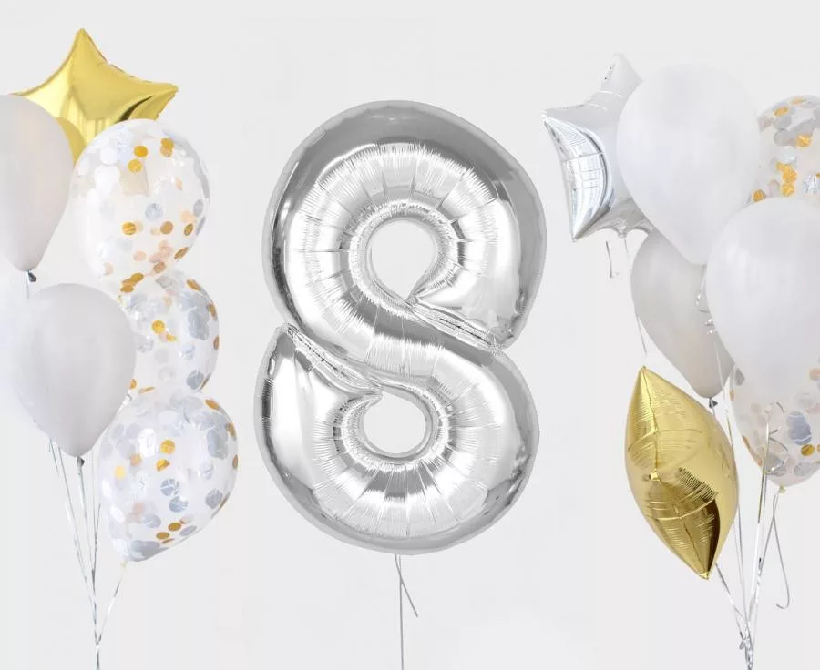 Ezüst 8-as szám fólia lufi 92 cm