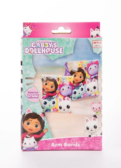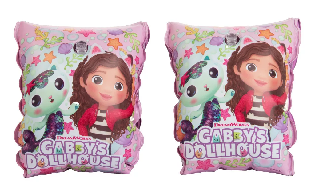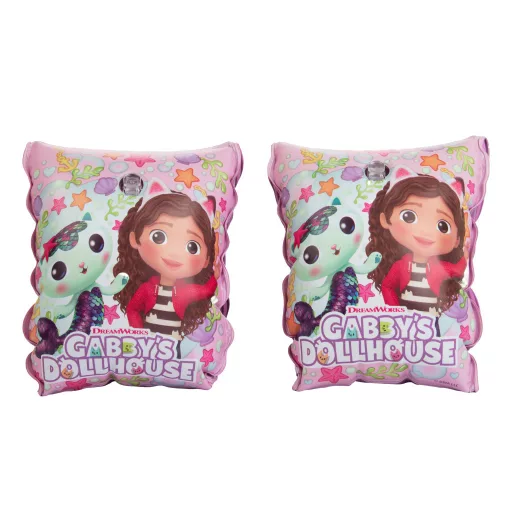 Ez egy Gabi babaháza mintás felfújható karúszó, amely segíti a gyerekeket a vízben való biztonságos mozgásban, legyen szó medencéről vagy strandról.