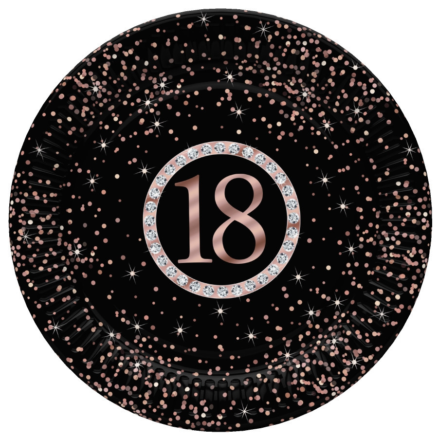Happy Birthday 18 Rose Gold papírtányér 8 db-os 22,7 cm
