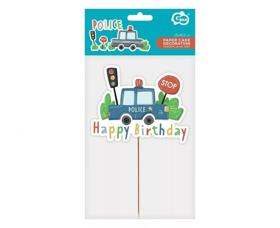 Happy Birthday Police, Rendőrautó torta dekoráció, topper 13 cm