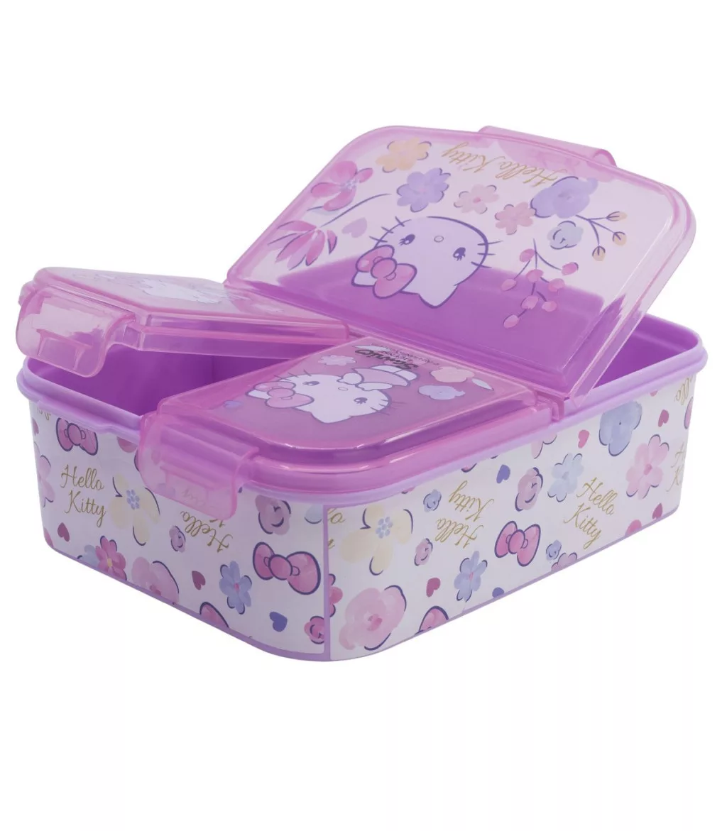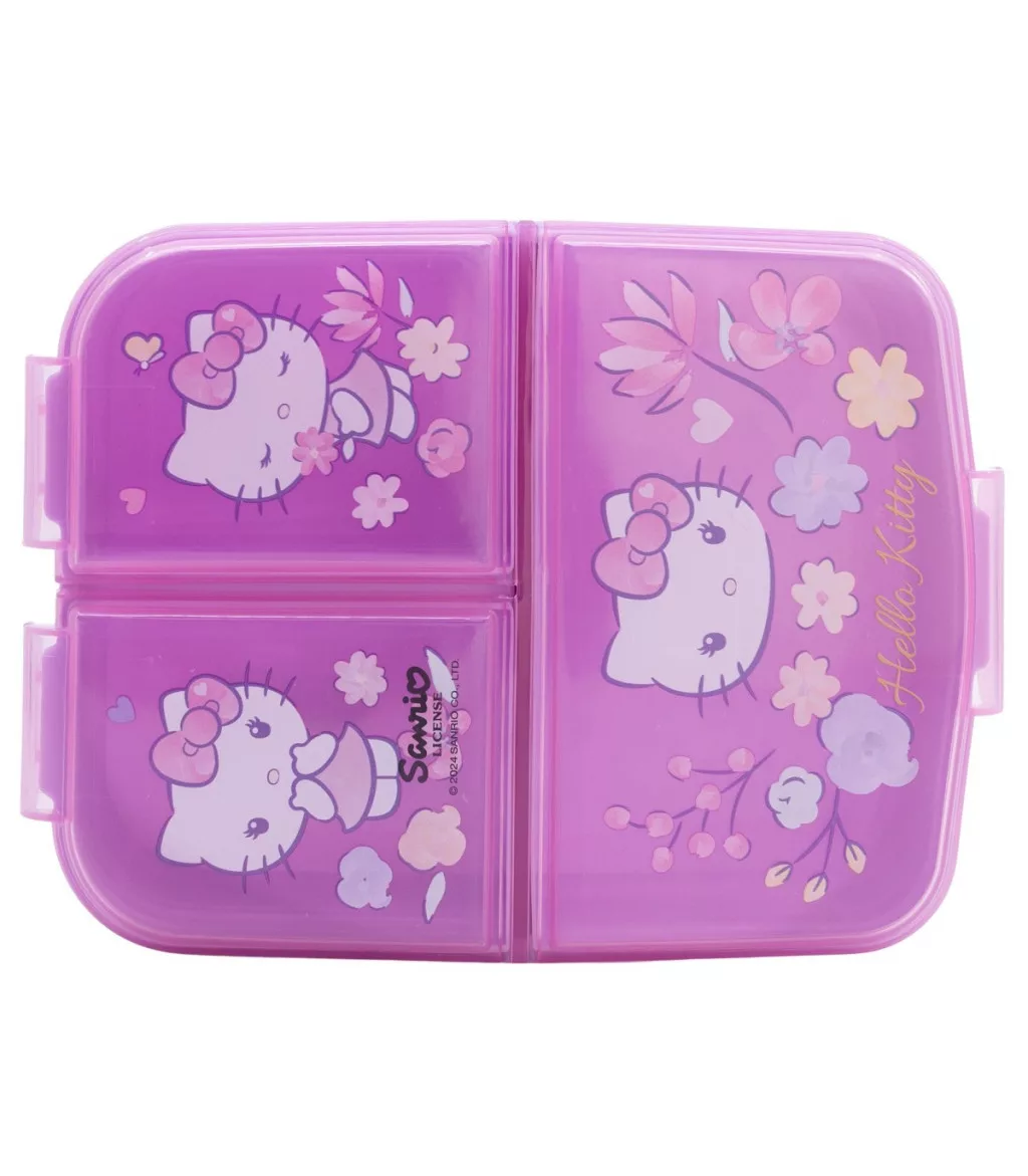 Ez a vidám, három rekeszre osztott ételtartó doboz tökéletes választás minden kis Hello Kitty rajongó számára – legyen szó iskolai uzsonnáról, kirándulásról vagy napközis tízórairól!