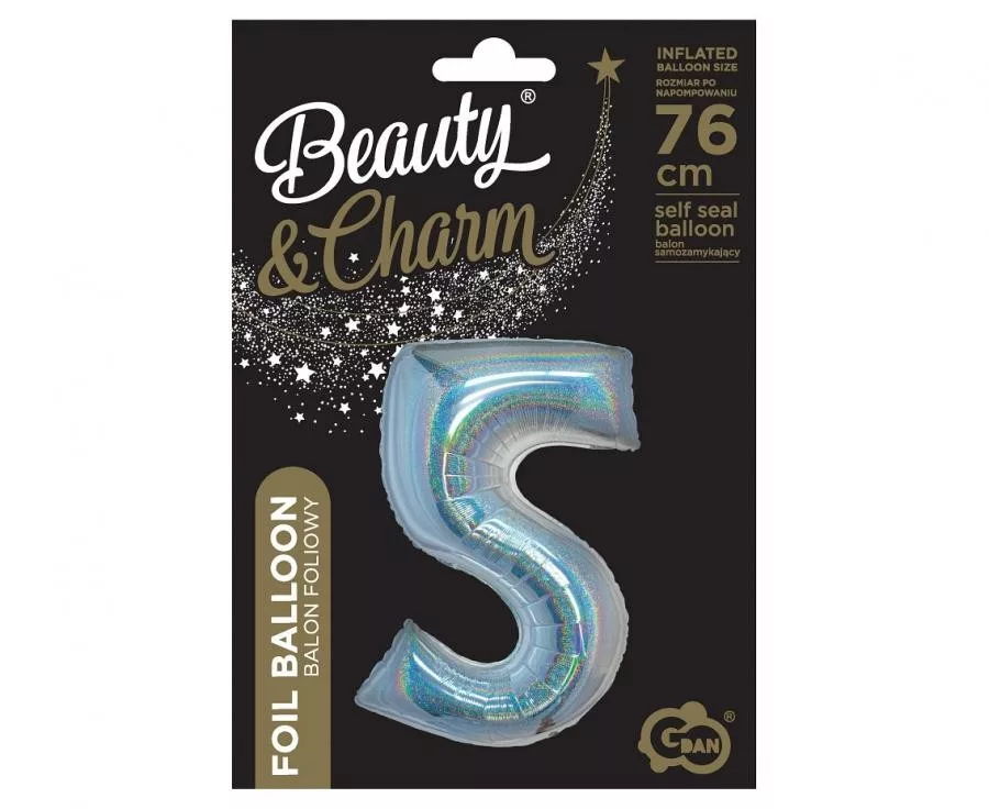 Holographic Silver, Ezüst 5-ös szám fólia lufi 76 cm