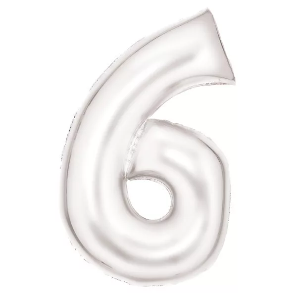 Lustre White, Fehér 6-os szám fólia lufi 86 cm