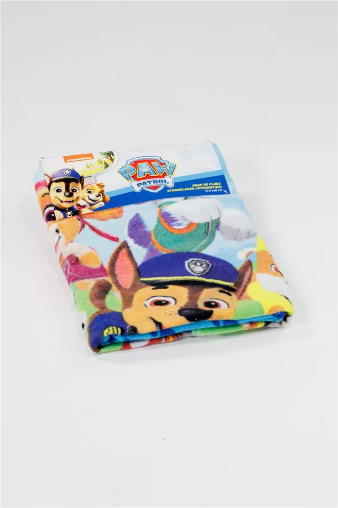 Ez egy Mancs Őrjárat mintás pamut fürdőlepedő, amelyet kifejezetten gyerekek számára terveztek strandoláshoz és mindennapi fürdéshez.