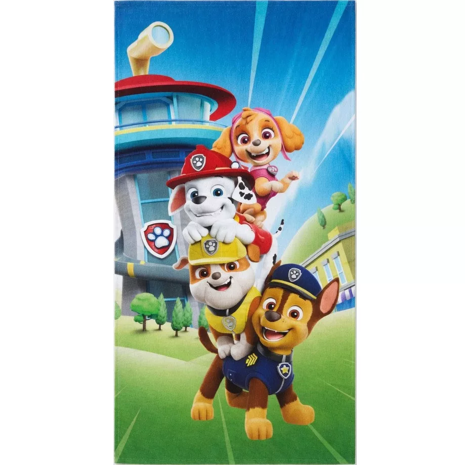 Ez egy Mancs Őrjárat mintás 100% pamut fürdőlepedő, amelyet fürdéshez és strandoláshoz terveztek, és a gyerekek mindennapi használatára alkalmas.