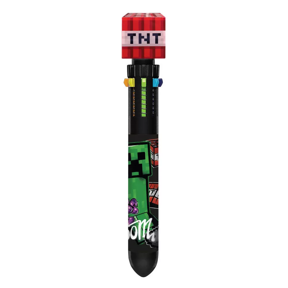 Ez egy Minecraft mintás 10 színű többfunkciós toll, amely egyetlen tolltestben több különböző tintaszínt kínál. Jegyzeteléshez, kiemeléshez és rajzoláshoz is használható, kreatív iskolai eszközként.