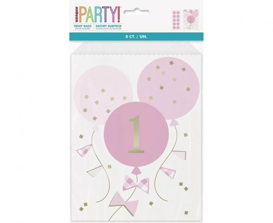 Pink 1st Birthday Party bags, Papírzacskó 8 db-os