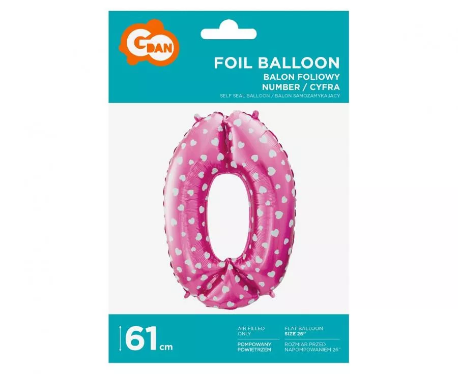 Pink with Hearts, Rózsaszín 0-ás szám fólia lufi 61 cm