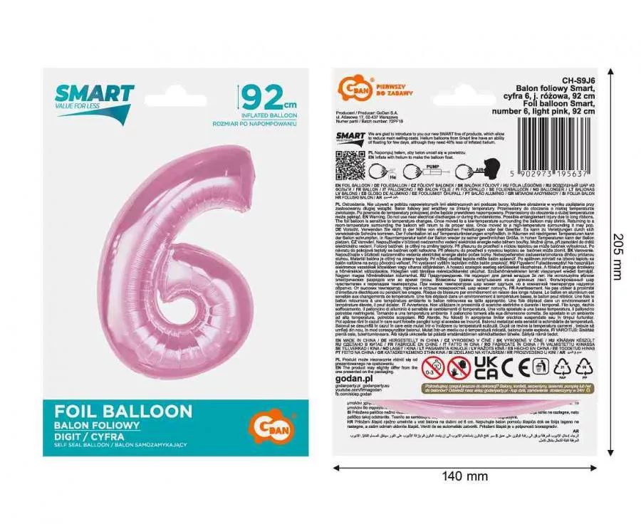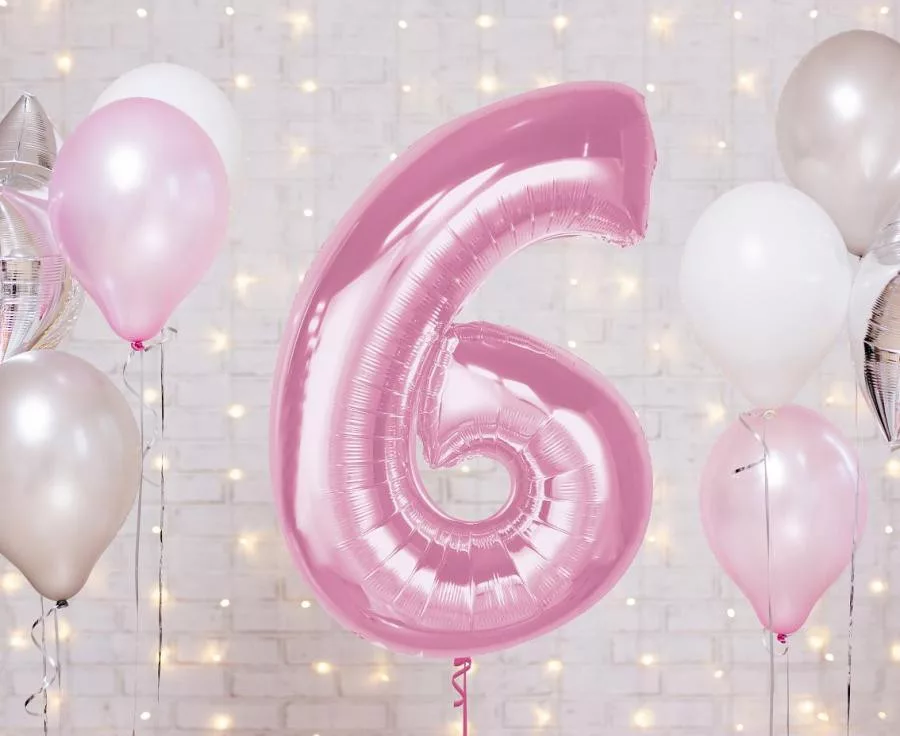 Rózsaszín 6-os szám fólia lufi 92 cm