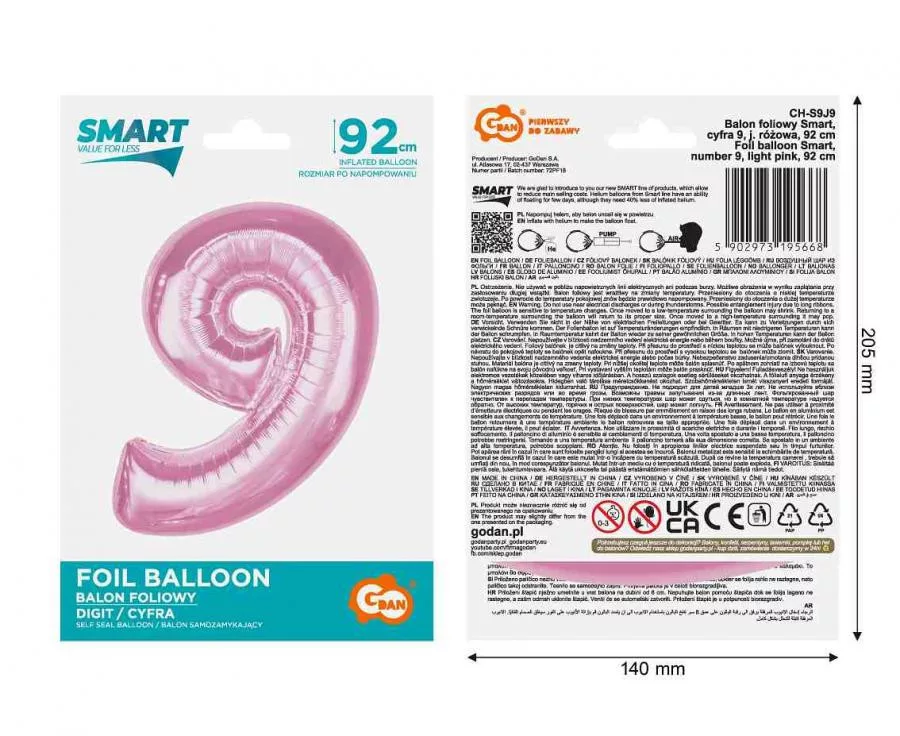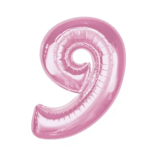 Rózsaszín 9-es szám fólia lufi 92 cm