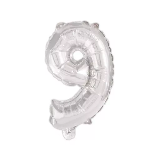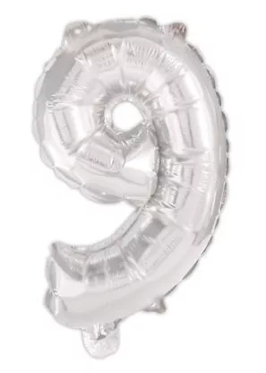 Silver, Ezüst 9-es szám fólia lufi 95 cm