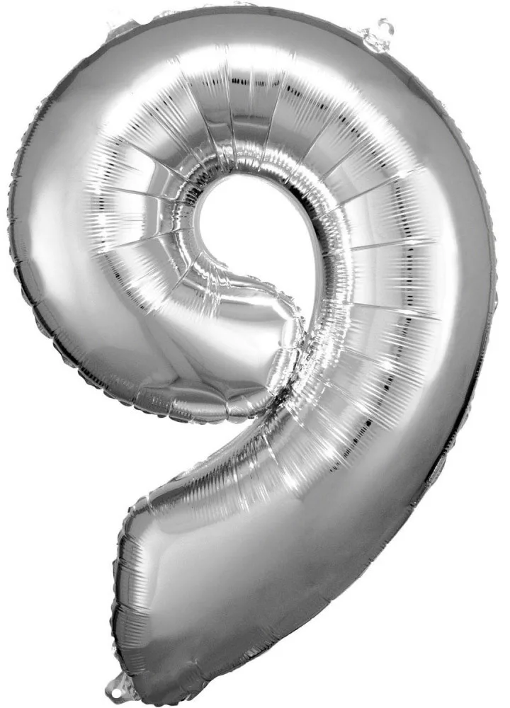 Óriás 9-es szám Fólia lufi, Silver 83*58 cm