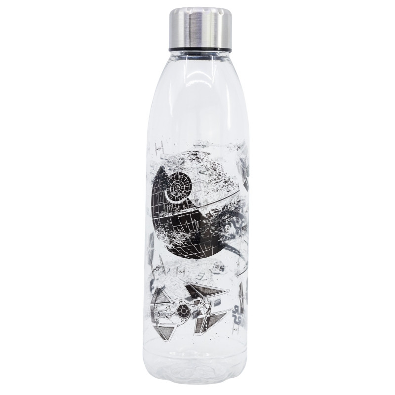 Elegáns, újrafelhasználható műanyag palack, amely a Star Wars film alapján készült elegáns minták díszítenek. Fröccsenésmentes, kiömlésbiztos fém csavaros kupakkal rendelkezik. Ideális, hogy kedvenc italát bárhová magával vigye, vagy hogy mindig kéznél legyen a szokásos munkahelyén vagy a tanulás helyén.