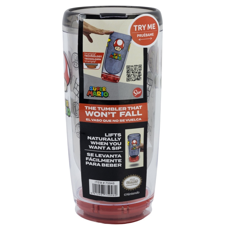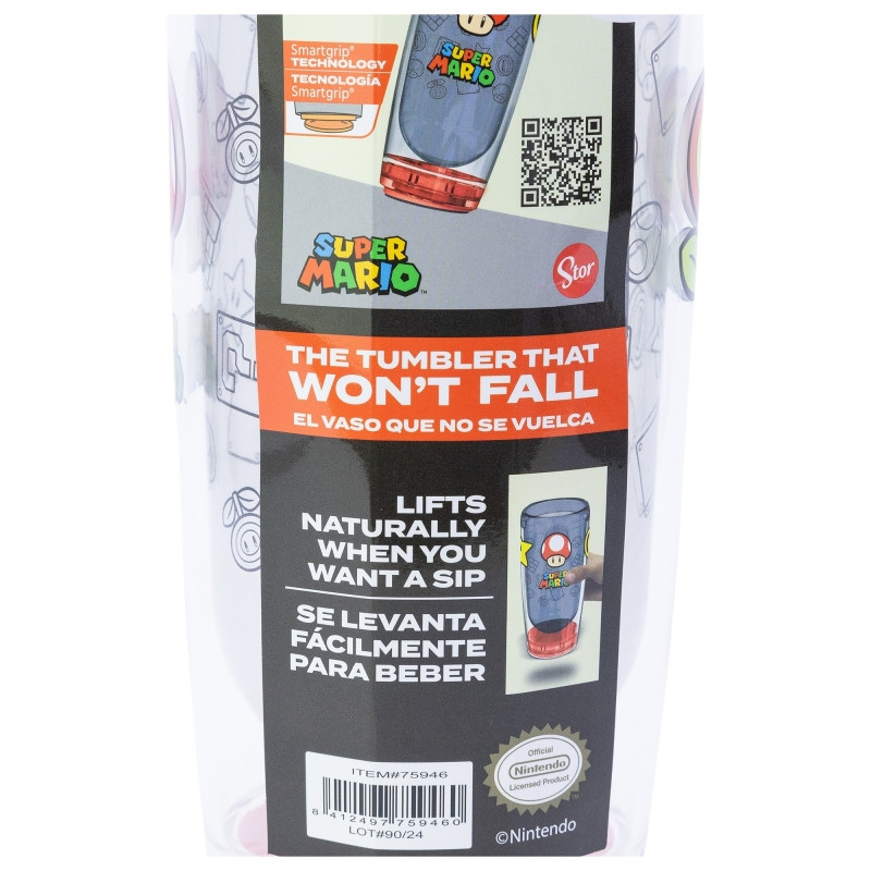 Super Mario duplafalú műanyag pohár a felborulásgátló Smartgrip rendszerrel, amely bármilyen sima felületre felcsatolható. A Smartgrip nem engedi, hogy a bögre felboruljon, mégis bármelyik pillanatban könnyen felvehető. Super Mario eredeti mintáival díszítve. Praktikus és funkcionális termék, amely soha nem megy ki a divatból.