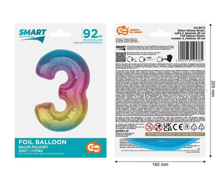 Színes 3-as szám fólia lufi 92 cm