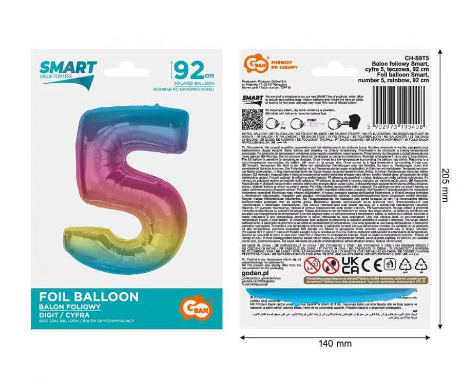 Színes 5-ös szám fólia lufi 92 cm