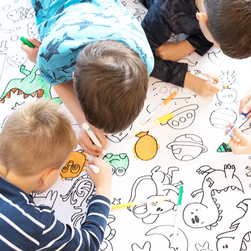 A legaranyosabb figurák egy helyen. Akár kisfiad, akár kislányod van, vagy egyszerre több gyermek érdeklődését szeretnéd játékosan lekötni, ez az unisex letörölhető padló színező minden kicsi számára ideális. A színezhető unikornisokon és robotokon túl a padlószőnyegen mini társasjáték és összekötős feladatok is találhatók.