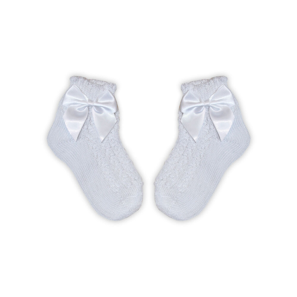 Divatos horgolt 100% pamut bokazokni ünnepi alkalmakra kislányoknak, masni díszítéssel. A légáteresztő felső rész és a 100% pamut anyag miatt nyári viseletnek ajánljuk.