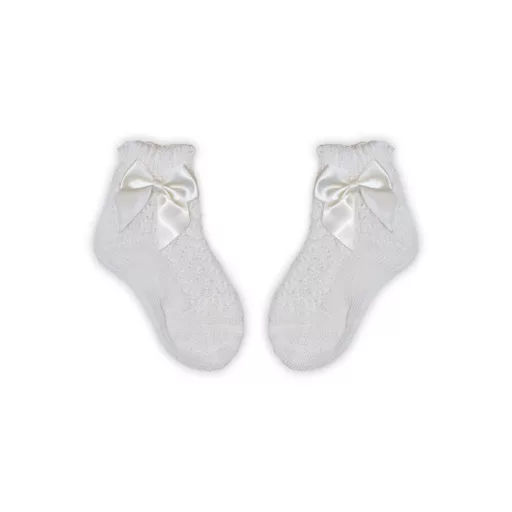 Divatos horgolt 100% pamut bokazokni ünnepi alkalmakra kislányoknak, masni díszítéssel. A légáteresztő felső rész és a 100% pamut anyag miatt nyári viseletnek ajánljuk.
