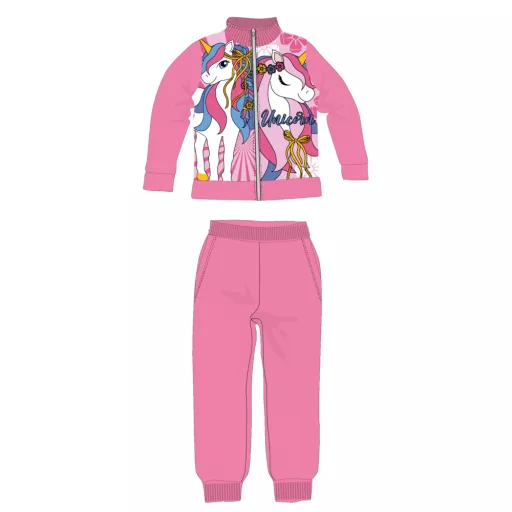 Szabadidő szett gyerekeknek kényelmes puha anyagból, mely könnyű mozgást tesz lehetővé. A garnitúrákat vidám figurák, a kedvenc mesehősök mintái díszítik. Felsőrész húzózáras, alsórész gumírozott derekú, 2 zsebbel kialakított.
