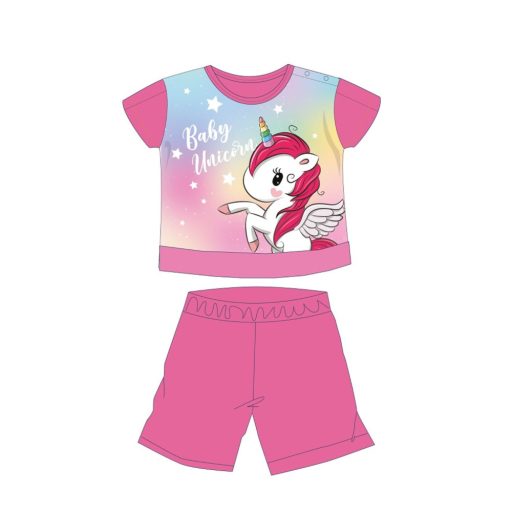 Unicorn, Unikornis rövid ujjú nyári pizsama kislányoknak 100% pamut alapanyagból, gombos vállrésszel. Kényelmes, bőrbarát viselet.