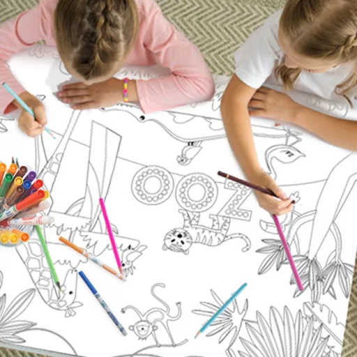 Színezze ki gyermeked az állatkert különböző lakóit egy óriás, letörölhető padlószőnyegen.