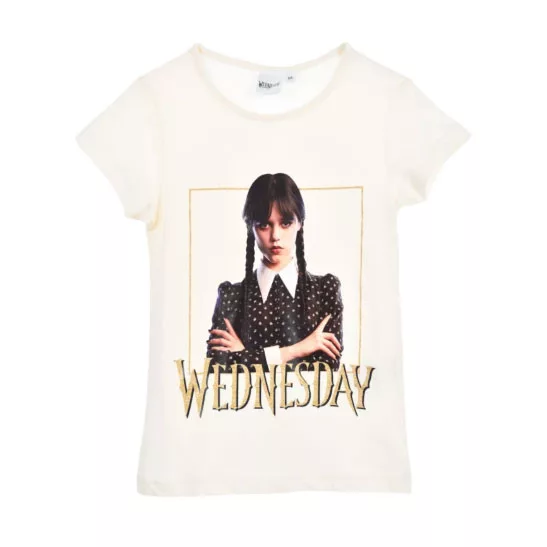Wednesday Gloomy White gyerek rövid póló, felső 10 év / 140 cm