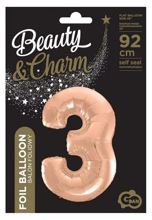 Rose Gold 3-as szám fólia lufi 92 cm