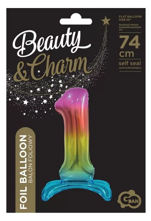 Rainbow, Színes 1-es szám fólia lufi talppal 74 cm