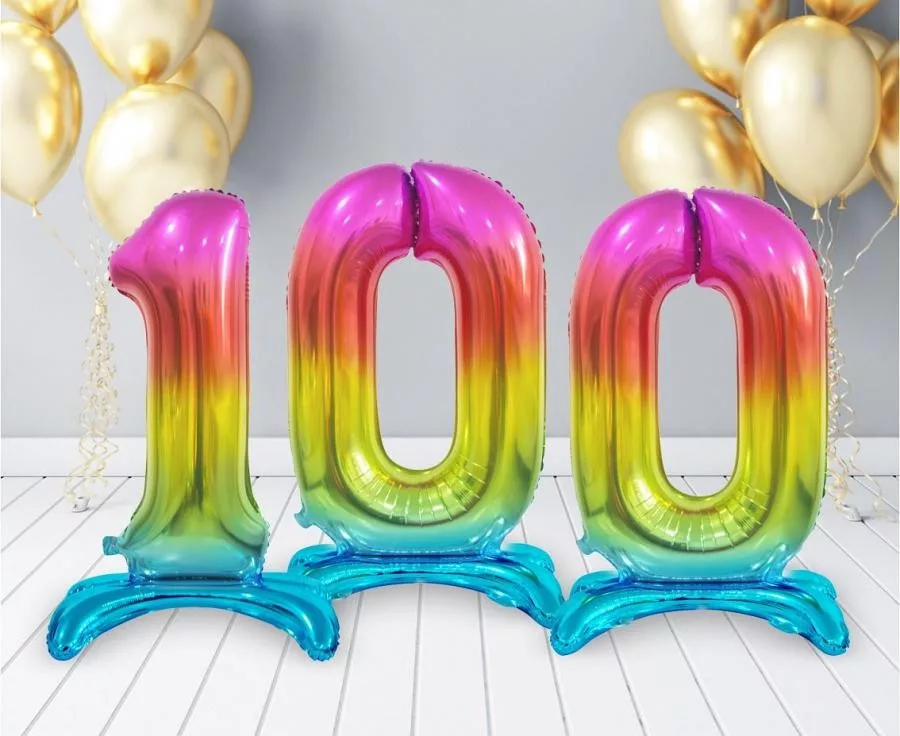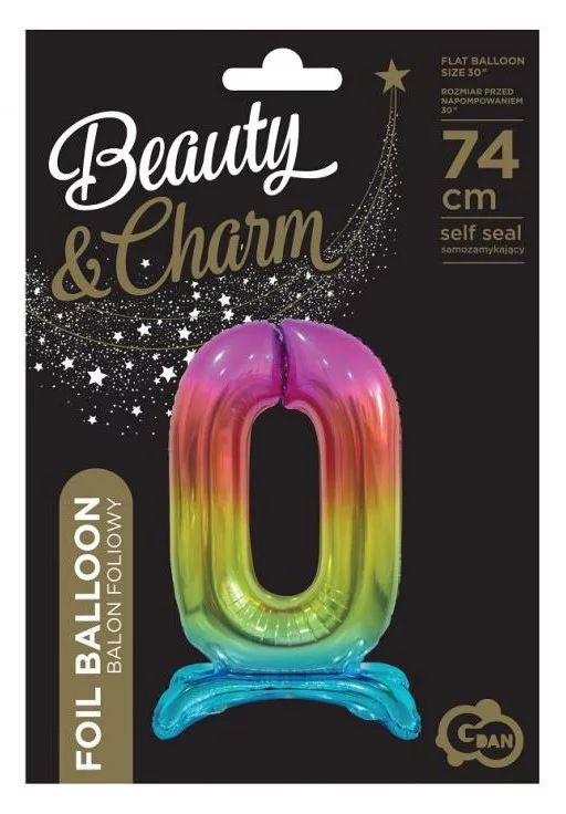 Rainbow, Színes 0-ás szám fólia lufi talppal 74 cm
