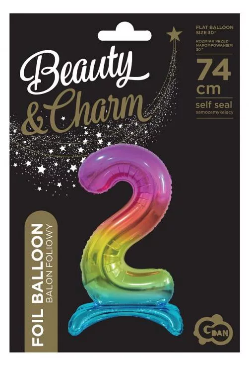 Rainbow, Színes 2-es szám fólia lufi talppal 74 cm