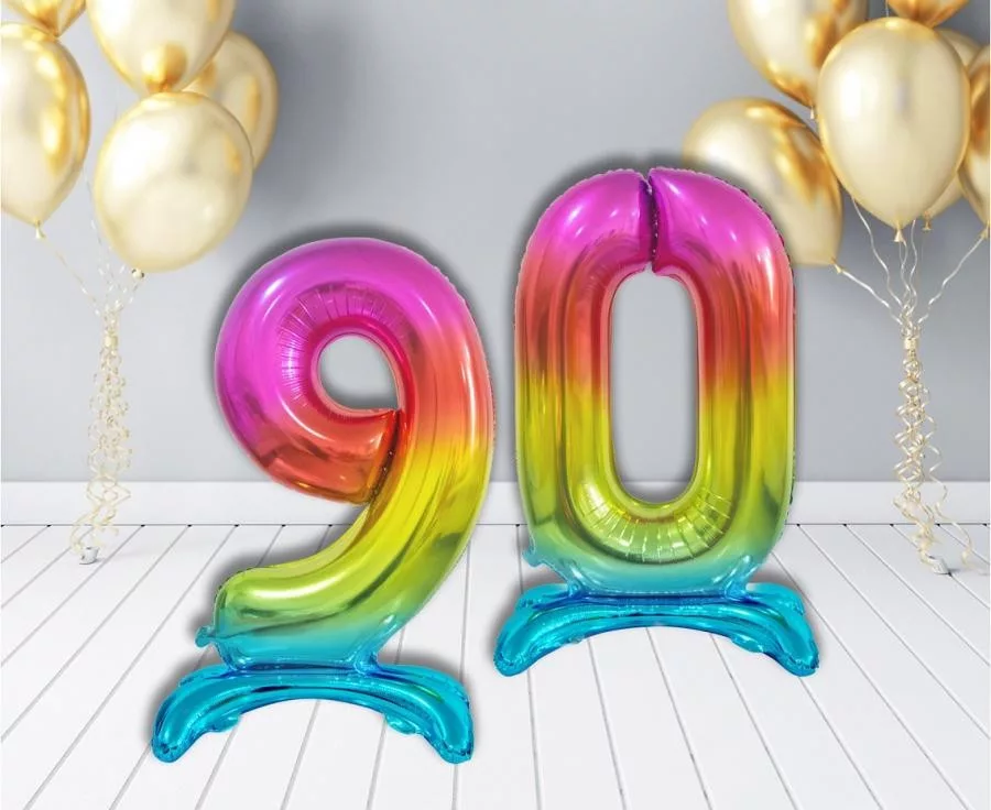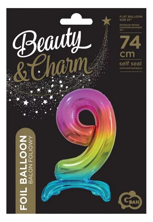 Rainbow, Színes 9-es szám fólia lufi talppal 74 cm