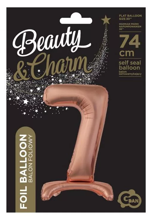 Rose Gold 7-es szám fólia lufi talppal 74 cm