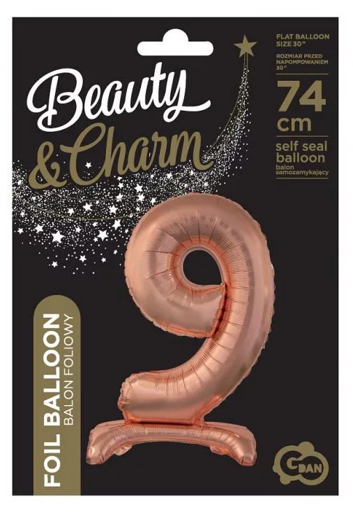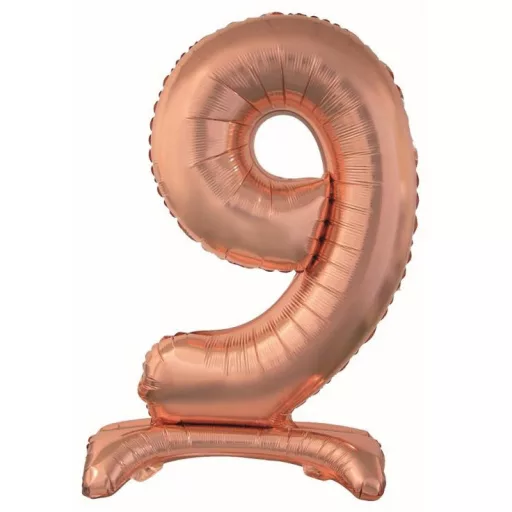 Rose Gold 9-es szám fólia lufi talppal 74 cm