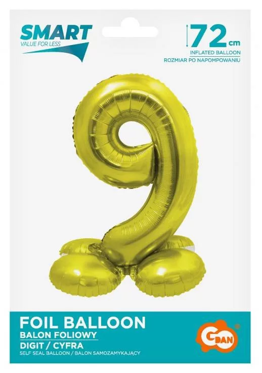 Gold, Arany 9-es szám fólia lufi talppal 72 cm