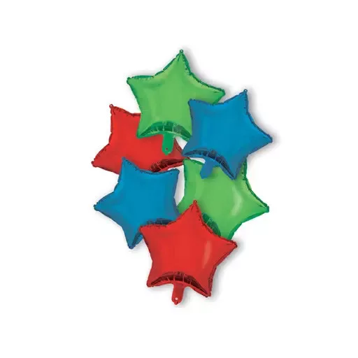 Red Blue Green Star, Csillag fólia lufi 6 db-os szett 46 cm
